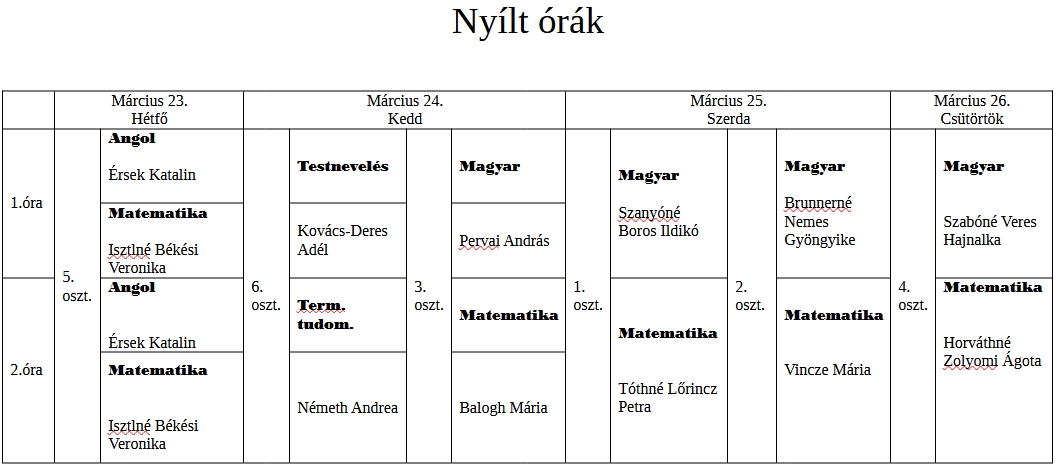Márc. 23-26. Nyílt órák (részletes programot az osztályfőnök fogja küldeni)